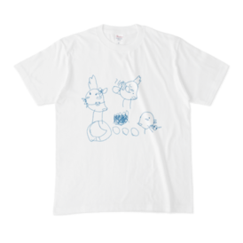 Tシャツ - XL - 白ニワヒリTシャツでテンションが上がってしまったむすめさんがペンを走らせ描いたニワヒリファミリーです。背面は宝の地図だそうです。宝…?