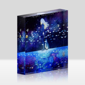 オリジナルイラスト「Night aquarium」を使用したアクリルブロックです。写真は2023年の展示会で商品を展示した際の画像です。 ※この商品はpixivFACTORYで作られた商品です。サンプル画像は完成イメージのため、実物と異なる場合があります。