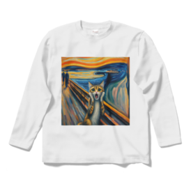 ロングスリーブTシャツ - XL - ホワイトネコの叫び ロングTシャツです