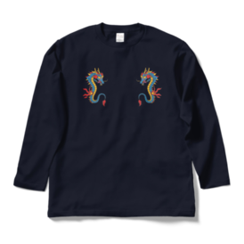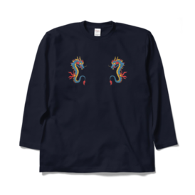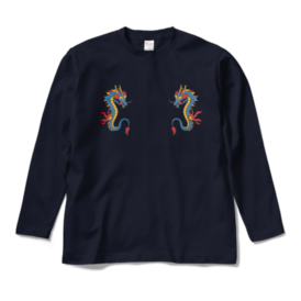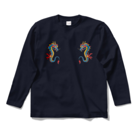 ロングスリーブTシャツ - XL - ネイビードラゴンスカジャン風ロングTシャツです。バックプリント無しです。 スカジャン、スーベニアジャケットお好きな方いかがですか? この商品はpixivFACTORYで作られた商品です。サンプル画像は完成イメージのため、実物と異なる場合があります。