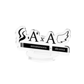 Youtubeで活動中の二人組Vtuber雨音空×Akumaのロゴをアクリルキーホルダーに! シンプルでかっこいい、自分たちが欲しい!使いたい!と思える普段使いのしやすさを考え 2人をモチーフにした水玉と羽に代名詞とも言えるタバコを加えたAxAを知るものにしかわからないデザインになっております!