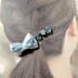 水色の花柄のサテンリボンとホワイトのサテンリボンを2種類使用したヘアクリップです。 サテン生地のリボンで、光沢があります。 クリップ部分には金平糖型のクリアビーズと星型の磨りガラス風ビーズをあしらっております。 リボンの中央には、ホワイトのボタンをあしらっています。 8cmヘアクリップ(材質:スチール) 全長 約9cm×高さ 約4cm ※アマチュアのハンドメイド作品であることをご理解の上、作品をお迎え下さい。 ※画像はイメージです。色味や形状などが多少実物とは異なる場合がございます。 ※大変繊細な仕上がりとなっております。お怪我の原因になりかねますので、必要以上に力を加えないで下さい。 ※汗、水に弱い素材でできております。濡れた場合は丁寧に水分を拭き取ると長持ちします。 ※金属アレルギーをお持ちの方は、十分にご注意下さい。