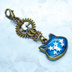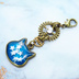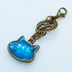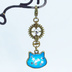 マスク・スマホチャーム ブルーキャットスター 青い猫フェイスに星を散りばめたチャーム アンティークゴールド 歯車 金具変更可