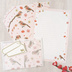 【文章がしっかり書ける便箋】【便箋の絵柄が透けるトレーシング素材の封筒】【宛名&差出人のラベル】を詰め合わせた、《mozu》シリーズの定形レターセットです。 阪急文具の博覧会2024を記念して作成した、梅ともずをモチーフにしたペーパーアイテムです。 【内容物・仕様】 <便箋> 素材:上質紙90Kg 印刷:オフセット サイズ:A5(210×148mm) 数量:10枚 <封筒> 素材:トレーシング105g サイズ:洋2カマス(162×114mm) 数量:3枚 <宛名・差出人ラベル共通> 素材:上質タック紙 印刷:軽オフセット(金インク使用) サイズ:宛名/約80×38mm、差出人/約80×23mm 数量:各3枚