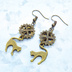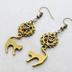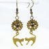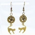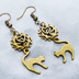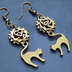 アンティークゴールド 跳ね猫と歯車を組合せたスチームパンク風のコンパクトなピアス ハート