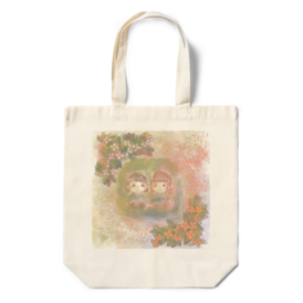 キンモクセイとギンモクセイの女の子のイラストエコバッグです。 ※この商品はpixivFACTORYで作られた商品です。サンプル画像は完成イメージのため、実物と異なる場合があります。