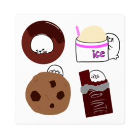 ステッカー - 100 x 100 (mm)あざらしとスイーツのステッカーです。大きさは100×100mmです。[この商品はpixivFACTORYで作られた商品です。サンプル画像は完成イメージのため、実物と異なる場合があります]