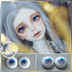 七宝グラスアイ 水彩タイプ(銀箔と透明釉薬使用) ふちどり線なし 直径・虹彩サイズは商品タイトル参照(直径/虹彩) ※0.5mm単位 計測部分によって0.5mm前後誤差あり カラー:上部ブルー、下部紫・ピンク、ふちどりライトブルー、虹彩線…濃紫、瞳孔…濃紫 特記事項:虹彩ふちのにじみ不均一、瞳孔の形状歪み、片目の瞳孔部分にごく小さな白い点 素材:銅板、ガラス(デザインにより銀箔や純銀線、銅線など使用) 共通のご説明は【商品について・諸注意事項】にまとめています。ご購入前にお読み下さい。 https://l-du-e.booth.pm/items/2993748 七宝グラスアイについて ・金属の土台にガラス質の釉薬を焼き付けたアイです。約800度の高温で焼成する焼き物で、経年劣化の心配はありませんが、温度変化や衝撃で割れる恐れがあります。 ・金箔・銀箔を表面に焼き付けたアイは、鋭利な物で強くこすると剥がれる場合があります。 ・焼き物のため、フチの部分は土台の金属が少し露出します。お取扱いにはご注意ください。 ・誤飲や怪我のおそれがありますので、ペットやお子様の手の届かない所に保管してください。 ・ハンドメイドにつき左右差や歪みがあります。 ・ドールに装着時隠れる白目部分の凹凸や気泡、色ムラ等は不良ではありません。