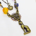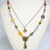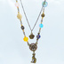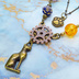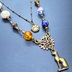 アンティークゴールド バステト 猫の神様 オリエンタル風 ダブルチェーン ビーズを組合わせたアシンメトリーネックレス アジャスター可