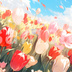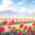 チューリップのイラスト背景素材 5枚セット 1920×1080px/72dpi/pngデータ 横長のweb用背景素材です。 Midjourneyという画像生成AIで出力しました。 すべての画像を出力後に編集しています。
