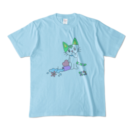 カラーTシャツ - XL - ライトブルー (淡色)ネコのみいみいさんは、ピンクのモフモフがお気に入り 遊んでいたらうっかり花瓶を倒してしまった!どうしよう… 淡色カラープリントです。画像をご確認下さい。 詳しいサイズは、 「詳しい製品仕様はこちら」という部分をご確認ください。 商品名とサイズの部分を押すと、それぞれのカラーが見れます。 この商品はpixivFACTORYで作られた商品です。サンプル画像は完成イメージのため、実物と異なる場合があります。