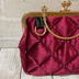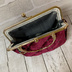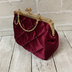深蘇芳 濃い赤 ベロアキルトがま口ハンドバッグ