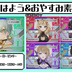 横サイズのおはよう&おやすみ素材です。 ※使用条件として、この素材の宣伝ポストのいいね&リポストをお願いいたします。リポストは引用でもOkです。 https://x.com/Shirokane_xmas/status/1773902332566306959?s=20 無断転載・自作発言・再配布・AI学習はすべて禁止です。 ご自身のモデルに色味が合わない場合もあると思われますので、色加工のみ可能とさせていただきます。その他大幅な加工改変はおやめください。 CAST みずにゅもち様 https://twitter.com/mizu_milkmochi 蝶咲つくも様 https://twitter.com/v_tsukm_ 早和山えがく様(OC) https://twitter.com/awa_yama_ チュイル・フラッフィ様 https://twitter.com/tuilefruffy 制作 白鐘クリス https://twitter.com/Shirokane_xmas
