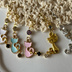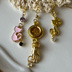 【1個売り・片耳売り】吉良吉影/キラークイーン イメージピアス/ノンホールピアス ◆吉良吉影 3枚目 向かって左からゴールド、シルバーです。 4枚目 裏側です。 物語のキーとなったスーツのボタンと女性の手で吉良吉影を表現したピアスです。 サイズ:長さ5cm(装着金具を含まず) ◆キラークイーン 5枚目 左からホワイト、ブルー、ピンク、ゴールド、シルバーです。 6枚目 裏側です。 猫のモチーフでキラークイーンを表現してみました。 しっぽの先にはシアーハートアタックを模したストーンを下げました。 カラーバージョンの上部のストーンの色は本体のスーツの色に合わせてみました。 カラーバリエーションは超像可動の原作者指定カラーを参考にしています。 サイズ:ゴールド・シルバー 長さ約3.5cm (装着金具を含まず) カラーバージョン 長さ約3.5cm(装着金具を含まず) ◆おまけ 猫草チャーム こちらのページの商品を2個以上ご購入の方に、猫草イメージチャーム1個をおまけでつけております。お付けするカラーはランダムになりますのでお選びいただけません。 サイズ:長さ約2.5cm(装着金具を含まず) ピアス金具:サージカルステンレス その他パーツ:真鍮、鉄、アクリル、プラスチック、ガラス等 ※お好きに組み合わせてつけていただける様に片側1個売りですので、両耳ペアで使用する場合は、同じ商品を2個ご購入ください。 ※金具を樹脂ピアス、樹脂ノンホールピアスに希望の方は、変更したい金具を購入個数分、一緒にご購入ください。 金具の変更、無変更が混在する場合には、メッセージにて詳細をお知らせ下さい。 なお、交換の際、接続金具(丸カン等)の増減が生じる場合があり、全体の長さが多少変わります。 交換金具のみの販売はしておりません。 ※海外製のパーツ、ガラス等を使用していますので、細かい傷やガラスの軽微な欠け、パーツの歪みなどがある場合がございます。その他、当ショップのトップページの注意事項をご理解いただいた上でのご購入をお願いします。