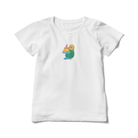 レディースTシャツ - L - 白消しゴムハンコで描いたセキセイインコのイラストをTシャツにしました♪ 手描きの風合いです。 大好きなセキセイインコのイラストを、日々様々に描いています。 この商品はpixivFACTORYで作られた商品です。サンプル画像は完成イメージのため、実物と異なる場合があります。