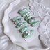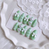【現品】 53 ネイルチップ ミントグリーン パール ハート リボン チェック柄 ガーリー 推しネイル 推し色 推しカラー 推し事