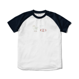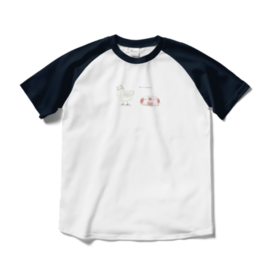 メロンっぽいピジョン(鳩)、通称ピロョンのラグランTシャツです。 浮き輪が入らないので山に旅立ちました。