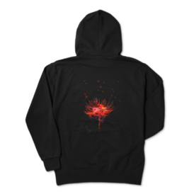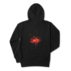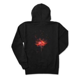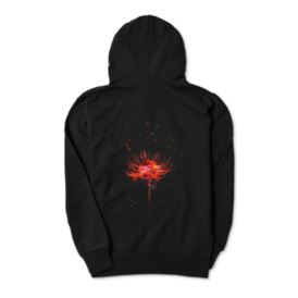リコリス (彼岸花) をイメージして制作した、場所を選ばずに着用できるシンプルなデザインのジップパーカーです。
