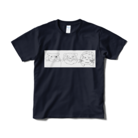 まぬるねこ(?)三銃士Tシャツ - XL - ネイビー配信でおなじみの宇宙マヌルネコ顔をはじめとした 個性光るまぬるねこ(?)三銃士があしらわれたTシャツのカラーバリエーションです🐾 夏の視線を独り占めにしてください! イラスト:摩絳ゆうひ画伯 注1)白線の印刷では線がかすれてしまいそうでしたので このようなデザインとなっております。 注2)白Tシャツとは制作を依頼するメーカーが異なっているため 価格に差があります事、ご理解ください。 この商品はpixivFACTORYで作られた商品です。サンプル画像は完成イメージのため、実物と異なる場合があります。