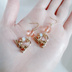 お座りしながら伸びをしている可愛い猫ちゃんチャームをメインに可愛いライトピーチ色のファイアポリッシュチェコビーズに小さめのガラスビーズを2つちょこんと合わせた可愛いワンポイントピアス/イヤリングになっております☺ メインのお色は瑞々しくて可愛らしいライトピーチ色、ゴールド金具と合わせて春にぴったりの明るく優しい色合いでまとめました☺ サイズもそこまで大きすぎず小さすぎない丁度いいサイズで仕上げました☺ 猫好きさんやワンポイントデザインの作品がお好きな方に特におすすめの作品となっております。 ※こんな方におすすめ♪ *大切な方へのプレゼントに *ワンポイント作品がお好きな方に *猫ちゃんがお好きな方に *ライトピーチ色がお好きな方に ☆ファイアポリッシュチェコビーズ ライトピーチ 8mm ☆ガラスビーズ オパールホワイト ボタンカット 4mm ☆ガラスビーズ ピンクオーロラ ボタンカット 4mm ☆お座り猫ちゃんチャーム ゴールド ☆丸カン ☆9ピン ☆ピアス用金具(フック式☆ゴールド) 長さは約4cmとなっております。(1cm程のピアス金具を含む)