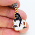 白いマグカップでくつろぐ黒猫チャームのキーホルダー シルバー・ブラックメタルビーズ 金具変更可