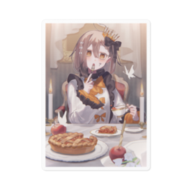 2024.4.16~販売(たぶん常設) イラスト▶︎巡 10cm×10cmのステッカー。 お誕生日なので、だいすきなアップルパイを食べました!!そういうお写真。 ※この商品はpixivFACTORYで作られた商品です。サンプル画像は完成イメージのため、実物と異なる場合があります。