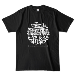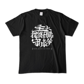 【 酒よ我らの肝臓を守り給えロゴver -肝臓ブラックTシャツ- 前面 】