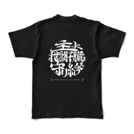 【 酒よ我らの肝臓を守り給えロゴver -肝臓ブラックTシャツ- 背面 】