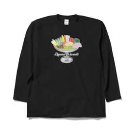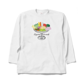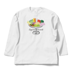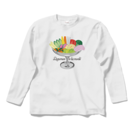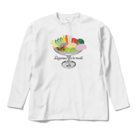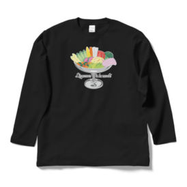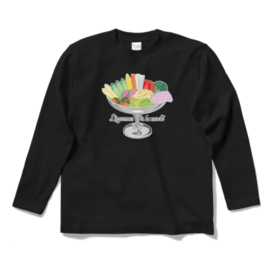 ロングスリーブTシャツ - XL - ブラック色とりどりの野菜を、プリンアラモード器に盛り合わせた「レギュムアラモード」。 栄養満点、見た目も鮮やかなデザインイラストと、オリジナルタイポグラフィーの組み合わせです。 この商品はpixivFACTORYで作られた商品です。サンプル画像は完成イメージのため、実物と異なる場合があります。