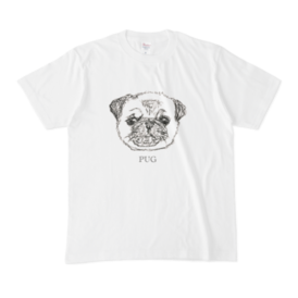 Tシャツ - XL - 白イラストレーターのbouyamachanがデザインしたパグTシャツです。 何とも言えない表情がポイントです♡ この商品はpixivFACTORYで作られた商品です。サンプル画像は完成イメージのため、実物と異なる場合があります。