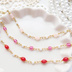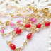桃色と紅色の春の絨毯 3色のナツメガラスビーズと小さなパールビーズを繋げて。 ベネチアンガラス、チェコガラス、JAPANヴィンテージガラス。 色とりどりな芝桜のイメージ。 春の装いにぴったりのアクセサリー。 ふわっとブラウスやワンピースに。 MDD~DDサイズ 約10cm+アジャスター ナツメビーズ(ガラス):6~4mm パールビーズ(アクリル):2.5mm アジャスターの先には同色のナツメガラスビーズを使用。 金具:ゴールドカラー(メッキ) ※ネックレス部分のサイズ調整可能です(無償範囲内)。 シルバーカラーでのオーダー製作可。 ご希望の場合はメッセージにてご連絡いただくか、事前にお問い合わせ下さい。 ※受注製作となります。