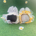 たわら型のぬいぐるみ用のワンピース、髪飾り、リボンベルトのセットです。 ふわふわの大きいリボンと、キラキラのチュール重ねスカート、お星様チャームのリボンなお洋服です。 スカートでスタンドや枕がなくてもある程度体を起こせて、ちょっと便利です。 (写真は支えなしで撮っています。ご参考までに…) もちもちマスコット(ちょうどいい) もちころりん(ちょうどいい) 上記のぬいぐるみで着用確認しています。 (マジックテープ着脱式ですので多少のサイズ融通がききます。) ⚠️最近発売されたもちちゃんは初期の子よりだいぶ大きい傾向にあるようです。 最新の子(オベロン)でも着用できるサイズには製作していますが、元のお洋服等のデザインによってはキツめになる可能性があります!