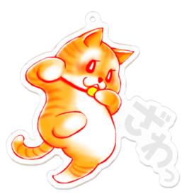 アクリルキーホルダー(コーティング) - 50 x 50 (mm)サクネコ お尻がチャームな格闘ネコ お出かけのお供に一緒にいかがでしょうか アクリルキーホルダー サイズ 7センチと 5センチがございます 片面印刷