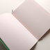 【64Pのパスポートサイズ】 肌触り、色、模様の違う紙を混ぜ合わせてオリジナルノートを作りました。 ポケットにすっと入れやすいトラベラーズノートのパスポートサイズです。薄手でめくりやすい厚さの紙を使用しています。 本文はさらっとした肌触りの色上質紙(桜色)を使用しています。市販のノートと同じくらいの厚さの紙で、表面が滑らかなのでペンなどの滑りはいいです (。・ω・。) ペンや万年筆で書いても味がありますし、絵を描いたり、写真を貼ったり、作品撮影用のミニ台紙、お出かけのお供用のメモとしても使えます。 *糸綴じノート original traveler's Passport 64P かぐや緑+ピンク 表紙: かぐや 上弦(緑) (深みのある色味に月の表面のクレーターを模したでこぼこがふしぎな息遣いを感じさせてくれる紙です) 本文: 色上質 さくら色 サイズ: パスポートサイズ、横8.9×縦12.4㎝ ページ数: 64P 【こんな方におすすめです】 紙が大好きな人/変わったノートが欲しい人/特に使わないけどなんとなく紙を集めてしまう人/メモを取るなどよくノートを使う人/アクセサリーの撮影用の資材を探している人/絵を描きたい人/万年筆で書く人 #パスポートサイズ #TN #リフィル #小さめ手帳サイズ #手帳 #紙たくさん #紙もの #ノート #背景素材 #スケッチブック #スクラップブック #紙 #台紙 #メッセージブック #クラフトブック #トラベラーズノート #レギュラーサイズ #ハンコノート #ダイアリー #メモ #万年筆で書いてみたい #俳句メモ #川柳メモ #インクノート #旅ノート #ログ #レタリング #万年筆 #水彩画 #ジャンクジャーナル #コラージュ