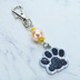 シルバーカラーの肉球とコーラルピンクのビーズを組み合わせたキーホルダー 金具変更可