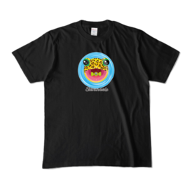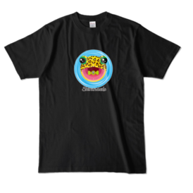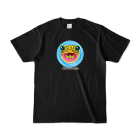 カラーTシャツ - XL - ブラック (濃色)大阪のカエルの模様は、みんなヒョウ柄だそうです そして、口の中には飴ちゃんを忍ばせている この商品はpixivFACTORYで作られた商品です。サンプル画像は完成イメージのため、実物と異なる場合があります。