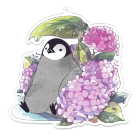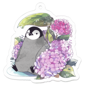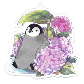 ペンギンと紫陽花のアクリルキーホルダーです。 この商品はpixivFACTORYで作られた商品です。サンプル画像は完成イメージのため、実物と異なる場合があります。
