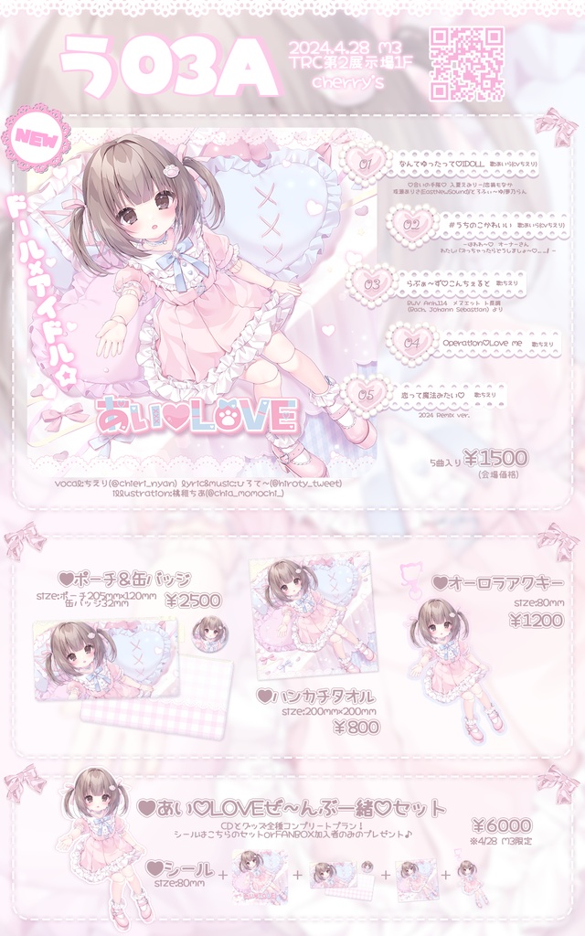 M3-2024springちえりちゃんのおみせあい♡LOVE【グッズ】ポーチ&缶バッジShips within 20 daysOut of StockPhysical (direct)3,000 JPYRequest Restock Notice MailUnrequest Restock Notice MailホログラムアクキーShips within 20 daysOut of StockPhysical (direct)1,500 JPYRequest Restock Notice MailUnrequest Restock Notice MailハンカチタオルShips within 20 daysOut of StockPhysical (direct)1,000 JPYRequest Restock Notice MailUnrequest Restock Notice MailAbout Giftイラスト:桃稚ちあ様 https://x.com/chia_momochi_ちえりちゃんのおみせM3-2025AutumnMusic (General)Melty♡Loveちえりちゃんのおみせ600 JPY~M3-2025AutumnMusic (General)ねこみみMAX!!もふ☆ピコ∞れぼりゅーしょん♡ちえりちゃんのおみせ900 JPY~Goods (Other)1 left in stockゆかたおもい【グッズ】ちえりちゃんのおみせ3,500 JPYM3-2025springMusic (General)コントン☆ゆめにっきちえりちゃんのおみせ500 JPY~Music (General)sweets decoration【CDとグッズ】ちえりちゃんのおみせ1,300 JPY~M3-2024autumnMusic (General)ピコっとペタっとONI-ONI♡PANICちえりちゃんのおみせ1,500 JPY~M3-2024autumnStickers1 left in stockピコっとペタっとONI-ONI♡PANIC【グッズ】ちえりちゃんのおみせ600 JPY~M3-2024autumnCan Badgeいロどリ♡4STARS【グッズ】ちえりちゃんのおみせ1,100 JPYComic Market 104Music (General)夏ロリ☆サバイバケーションちえりちゃんのおみせ1,500 JPY~Comic Market 104Towels夏ロリ☆サバイバケーション【グッズ】ちえりちゃんのおみせ4,500 JPY~Goods (Other)おしえて♡ほーむちゅーたー【グッズ】ちえりちゃんのおみせ1,000 JPY~M3-2024springCommuter passちんちん電車ごっこ♡【グッズ】ちえりちゃんのおみせ700 JPY~Illustration (Other)3D衣装イラスト【グッズ】ちえりちゃんのおみせ500 JPY~Goods (Other)2024お誕生日【グッズ】ちえりちゃんのおみせ500 JPY~Cosplay CDsphotobook♡データちえりちゃんのおみせ500 JPYPhotos2024生誕衣装ランダムブロマイドちえりちゃんのおみせ1,200 JPY~See More