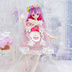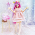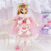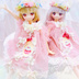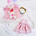 ピンクのチュールとお花のとびきり甘いワンピースセットです。 チュールのオーバーワンピースに沢山のお花とパールを散りばめました。 真ん中にはジャムのモチーフタグで甘さをプラスしています。 華やかなオーバーワンピースの下はシンプルなワンピースとレースソックスなので、お手持ちのアイテムと合わせてコーディネートしたり、1枚で着せても。 花冠はドライフラワーを花びら一枚一枚レジンでコーティングしました。手間を惜しまず大切に制作しております。 花冠は前後左右お好きな位置でお楽しみいただけます。(上下はありますのでお気を付けください。)