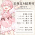 桜をイメージして作成したキャラクターの立ち絵です。TRPG探索者・NPC・モブ等素材としてご利用ください。 数ある花言葉から「純潔」をテーマに選び、天真爛漫な少女をデザインしました。 ※用途・設定はこれに限らずお使いいただいて問題ございません。 ■内容(全282ファイル) ・表情差分14種×ヘアカラー差分2種(桜カラー・白髪)×ヘアスタイル差分2種(ミディアム・ロング)×衣装差分(私服・漢服・アウトドアスタイル・黒セーラー・白セーラー)×5種(全280枚) ※ヘアカラー・スタイルでセットを分けています。 例)桜カラー・ミディアムヘアセットに衣装差分5種フォルダ→その中に表情差分14種(1セット内合計71枚) ※各ファイルすべて個別に購入した際の値段よりもフルセットを購入した場合の値段を500円安くしています。 ・花束イラスト素材×1 ・利用規約×1 ※画像素材はすべてPNGファイルです。 ※立ち絵画像サイズ:1272×1794ピクセル ※花束イラスト画像サイズ:1450×2354ピクセル ■利用規約 ・各セット内にもテキストファイルで同梱していますが、最新の規約はこちら【 https://privatter.net/p/10080047 】をご確認下さい。 ・著作権の放棄・譲渡はしておりません。加工後のものも含め、再配布・二次配布、無断転載、自作発言などは厳禁です。 ・AI学習への利用もお控えください。