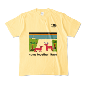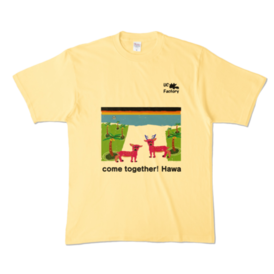 カラーTシャツ - XL - ライトイエロー (淡色)ハワイの風景に新たな魅力を加える、ユニークで楽しいTシャツが登場しました! このデザインは、ハワイの美しいビーチでのんびり過ごすシカたちを描いたものです。そよ風に舞うヤシの木の下で、シカたちは楽しそうに波打ち際で遊んでいます。 この愛らしいシーンは、ハワイのリラックスした雰囲気と自然の美しさを表現しています。 このTシャツを着ることで、あなたもハワイの魔法に包まれた気分を味わえます。柔らかで快適な素材で作られており、どんな場面でも活躍すること間違いなし!自然と笑顔が溢れる、素敵な一枚です。 サンプル画像は完成イメージのため、実物と異なる場合があります。