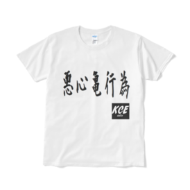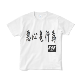 中国語における格闘ゲーム(主にKOF'98UMFE)のスラングのようなものをプリントしたTシャツです。 悪心=気持ち悪い・きもい 亀 =ガン待ち 行為=プレイ 「きめえガン待ちしてんじゃねえぞコラ!」って感じで、チャットで言われたんです。はい。 まあそれはそれとして、漢字の醸し出すイメージも語呂も何もかも素晴らしいですよね。