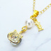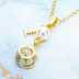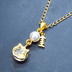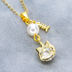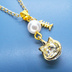可愛い猫フレーム(ゴールドカラー)のスワロフスキー(9色選択)とスワロパールのネックレス 魚のチャーム 長さ調整可