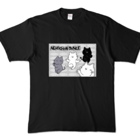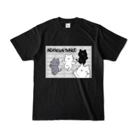踊るネコチャンのTシャツ 招き猫っぽいのもいるし縁起良さそう(個人の感想です) ※この商品はpixivFACTORYで作られた商品です。サンプル画像は完成イメージのため、実物と異なる場合があります。