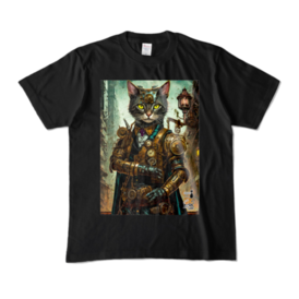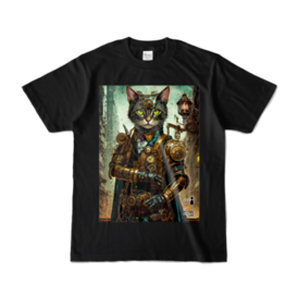 カラーTシャツ - XL - ブラック (濃色)「保安官ワイアット・ニャープ」がスチームパンクの世界に登場!猫がウェスタン調のスチームパンク衣装を身にまとい、まるで時代を超越した魅力的な存在。この猫保安官の外套はまさに個性溢れる一着!🐾🤠✨ #猫 #スチームパンク #ウェスタン この商品はpixivFACTORYで作られた商品です。サンプル画像は完成イメージのため、実物と異なる場合があります。