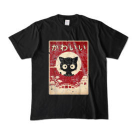 カラーTシャツ - XL - ブラック (濃色)クールな日本デザインのビンテージ・レトロな黒ラーメン猫。ノスタルジックな雰囲気とモダンな要素を組み合わせ、独創的で魅力的なイメージを生み出しました。このデザインは、ブラックカラーの猫とラーメンが融合した、ユニークでスタイリッシュなアートです。