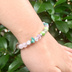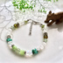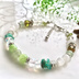 夏に青々と育つ植物のような爽やかなグリーン系の天然石を集めた伊達工業高校イメージのブレスレットです。 夏の暑さの中でも爽やかなアクセサリーを身に付けませんか? キャンディのように可愛らしいグラデーションのキャンディクォーツを使うことで可愛らしさをプラス。 更にサザレ石やメタルビーズ、ロンデルを加えて単調すぎないブレスレットに仕上げました。 これ一つでも見劣りしないクリスタルや天然石の美しさをお楽しみください。 これからの季節、海や山、お祭りなど様々な場面で活躍すること間違いなし(^^) 天然石を使用していますので濡れても安心♪ ちょっとした川遊びにも最適ですよ。 (金属部分は濡らさないでください) 【使用材料】 キャンディクォーツ グリーンアベチュリン ホワイトジェイド アマゾナイト ペリドット ガラスビーズ チェコガラスビーズ メタルビーズ ロンデル 【サイズ】約17~19cm アジャスターがありますので、約17~19cmで調節出来ます。 また、5cmの長めのアジャスターへの変更も出来すので必要な方は備考欄にご記入ください。 水に触れる際は外して頂くと金属の劣化を遅らせることが出来ます。 ハンドメイド作品であることをご理解頂きますようお願いいたします。 配送は、普通郵便となります。配送事故への補償はございません。 ご心配な方は+100円でクリックポストへの変更が可能ですのでご購入前にお知らせくださいませ。 【pulia 】