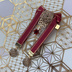 【リボン髪飾り】 和風×濃紅 髪飾り×1点 ドールサイズの髪飾りを制作いたしました。 髪飾りはドール向かって右側のウィッグへクリップで留めて頂ける様に制作しております。 お品物は、髪飾りのみです。お人形が写っているお写真は着用例(MDD)となりますので、サイズ感等をご参考ください。(ドール本体や、撮影用に使用している小物類は付属致しませんのでご注意ください) ◆使用素材等◆ 金属、シフォンパーツ、ガラスやタッセル、プラスチック等色々です。難黄変のレジンや、ニカン・丸カン等で各パーツの接着を行っております。 金属・レジンアレルギーの方はご注意ください。 できるだけパーツが外れたりしないよう、ニカンを中心に使用し、マルカン使用部分で、外れる不安がある箇所に関してはレジンにて隙間をふさいでおりますが、華奢なパーツ類も使用しておりますため、優しくお取り扱いいただけますようお願い致します。 金属パーツに関してですが、海外製品も使用しており、なるべく綺麗なものを選んで使用しておりますが、どうしても元々少々のスレや小傷などがあるパーツもございます。お気になされる方はご購入をご遠慮くださいますようお願い致します。 ◆ドール着用時のご注意◆ 必ず、ウィッグの上からのご使用をお願い致します。金属パーツを使用しています為、お顔にパーツが当たらない様装着してあげて下さい。 色移りは湿度や条件によって変わってきますので、長時間の装着したまま・・は推奨できません。様子をご覧いただきご使用をお願い致します。 (念の為、特にタッセル部分はお顔など本体に直接触れない様ににご使用下さい) 大変すみませんが、色移りや、パーツこすりでのメイクの削れ等での責任は当方では負えませんのでご了承ください。 ◆その他◆ 丁寧に一点・一点手作り致しましたが、手作業です。プロの作品のようなクオリティーはございませんので、ハンドメイドへのご理解をいただき、雰囲気を気に入って下さった方のご購入をお待ちしております。 ◆発送に関しまして◆ 少々お待たせいたしますが、都合により発送まで最大で、一週間(土日祝を除く)程度頂戴しますが、ご了承ください。