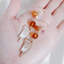なんとぶらぶらさせられている可愛い茶トラの猫ちゃんチャームをメインに2色のしずく型チェコビーズ、大人シックなトパーズ色のファイアポリッシュチェコビーズを合わせた可愛いピアス/イヤリングとなっております☆ メインのお色はまるで眩しい夕暮れ時のようなブラウン色、ゴールド金具と合わせて可憐で大人っぽい色合いにまとめました☆ 猫ちゃんがお好きな方にはもちろん、ユニークなデザインがお好きな方やしずくビーズがお好きな方におすすめの作品となっております♪ アレルギー対応のピアスやイヤリングへの変更についてはご注文時にオプションよりご希望金具をお選び下さい ※こんな方におすすめ♪ *大切な方へのプレゼントに *揺れるピアスがお好きな方に *ネコちゃんがお好きな方に *プチプラ価格でファッションコーデを楽しみたい方に ☆しずく型チェコビーズ キャラメルトフィ コンビ 9x6mm ☆しずく型チェコビーズ デュアル グァバエッチドABゴールド 9x6mm ☆ぶらぶらネコチャーム 茶トラ猫 約2.5cm ☆ファイアポリッシュチェコビーズ ブラウン ライトブルー 特殊カラー 8mm ☆丸カン ☆9ピン ☆ピアス用金具(フック式☆ゴールド) ※少しだけ重たい作品となる為、キャッチを付けさせて頂きます。 長さは約6.5cmとなっております。(1cm程のピアス金具を含む)