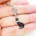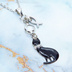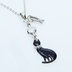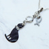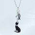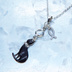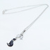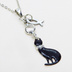 ラインストーンのリボンのついた黒猫チャームにお魚を添えた大人可愛いネックレス クリアラインストーン ステンレス可